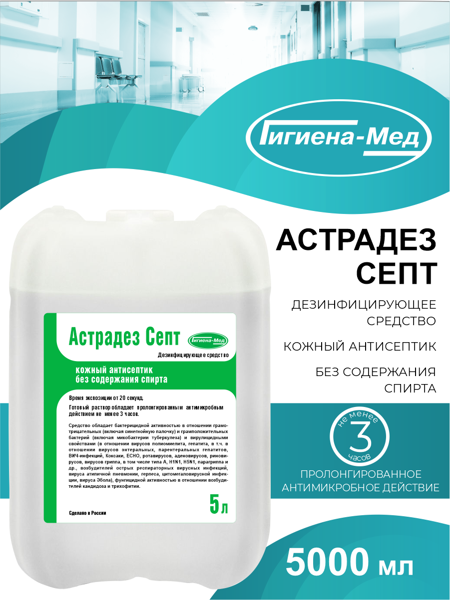 Антисептик для рук и поверхностей бесспиртовой 5л астрадез-септ, дезинфицирующий, жидкость (арт. 606922)