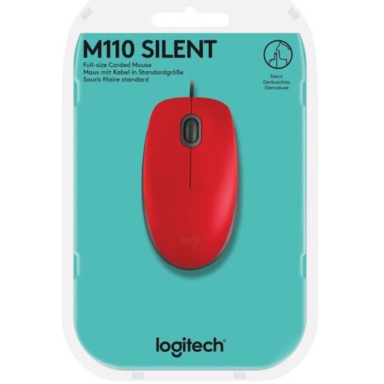 Мышь проводная Logitech USB M110 SILENT RED