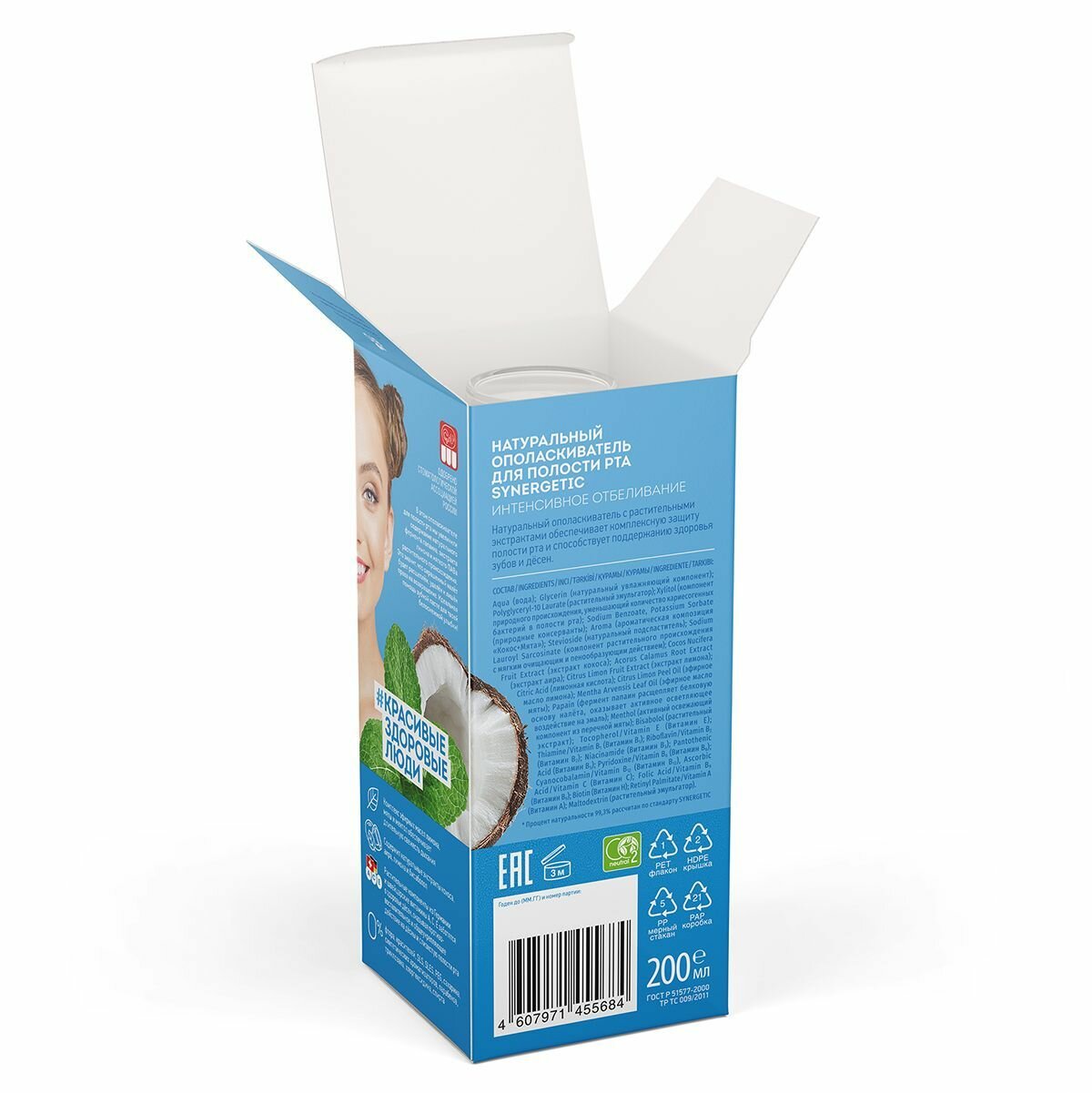 Ополаскиватель для полости рта SYNERGETIC Комплекс-формула 7 в 1, натуральный, 200мл 4607971451686