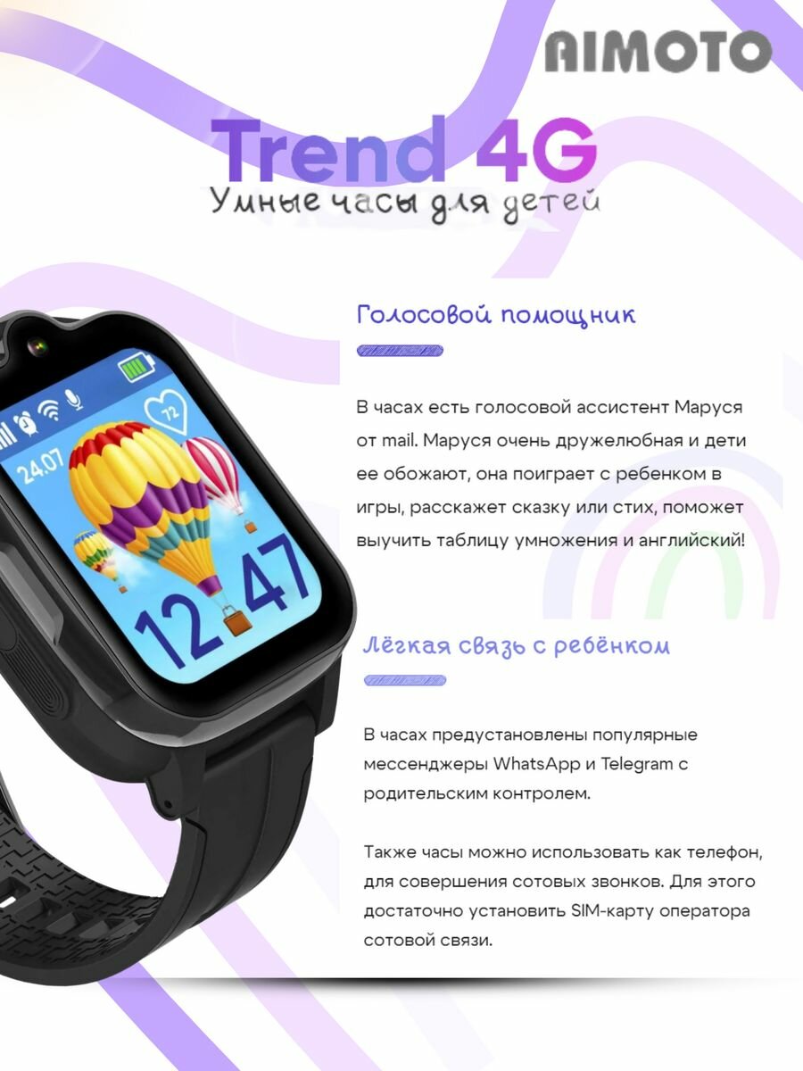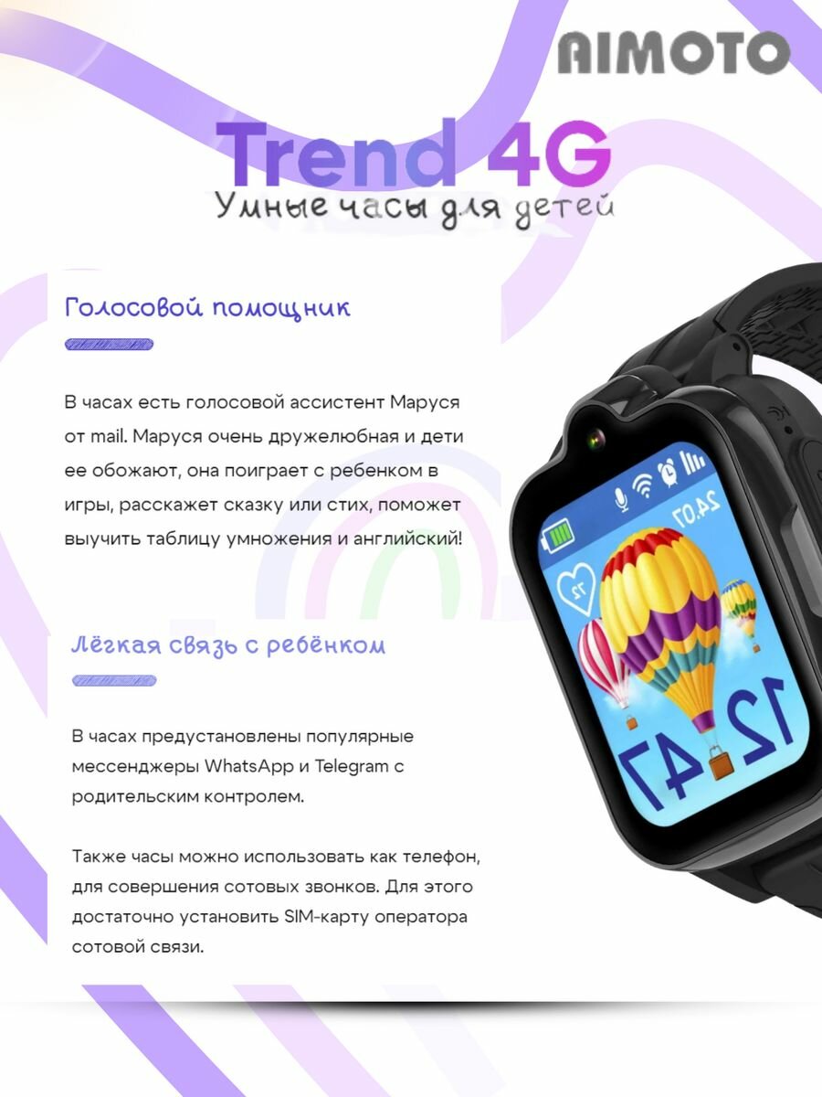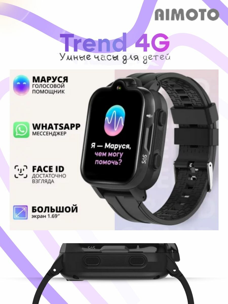 AIMOTO IQ 4G Детские умные часы с голосовым помощником Маруся (черные)