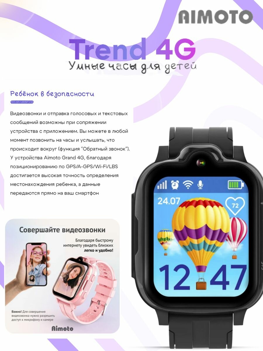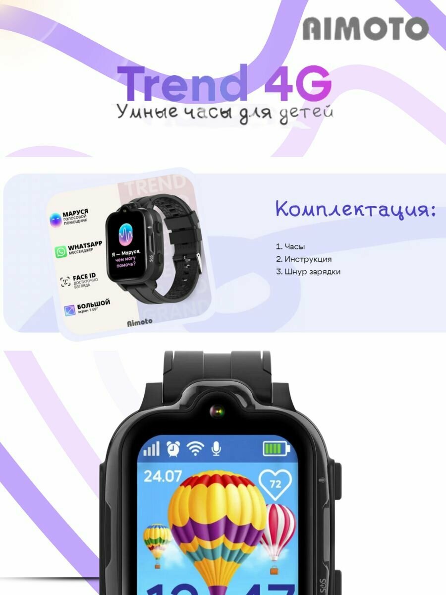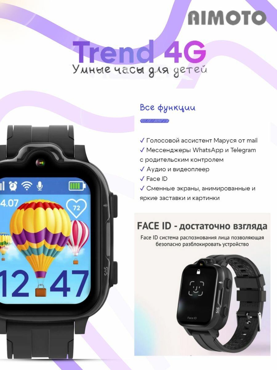 AIMOTO IQ 4G Детские умные часы с голосовым помощником Маруся (черные)