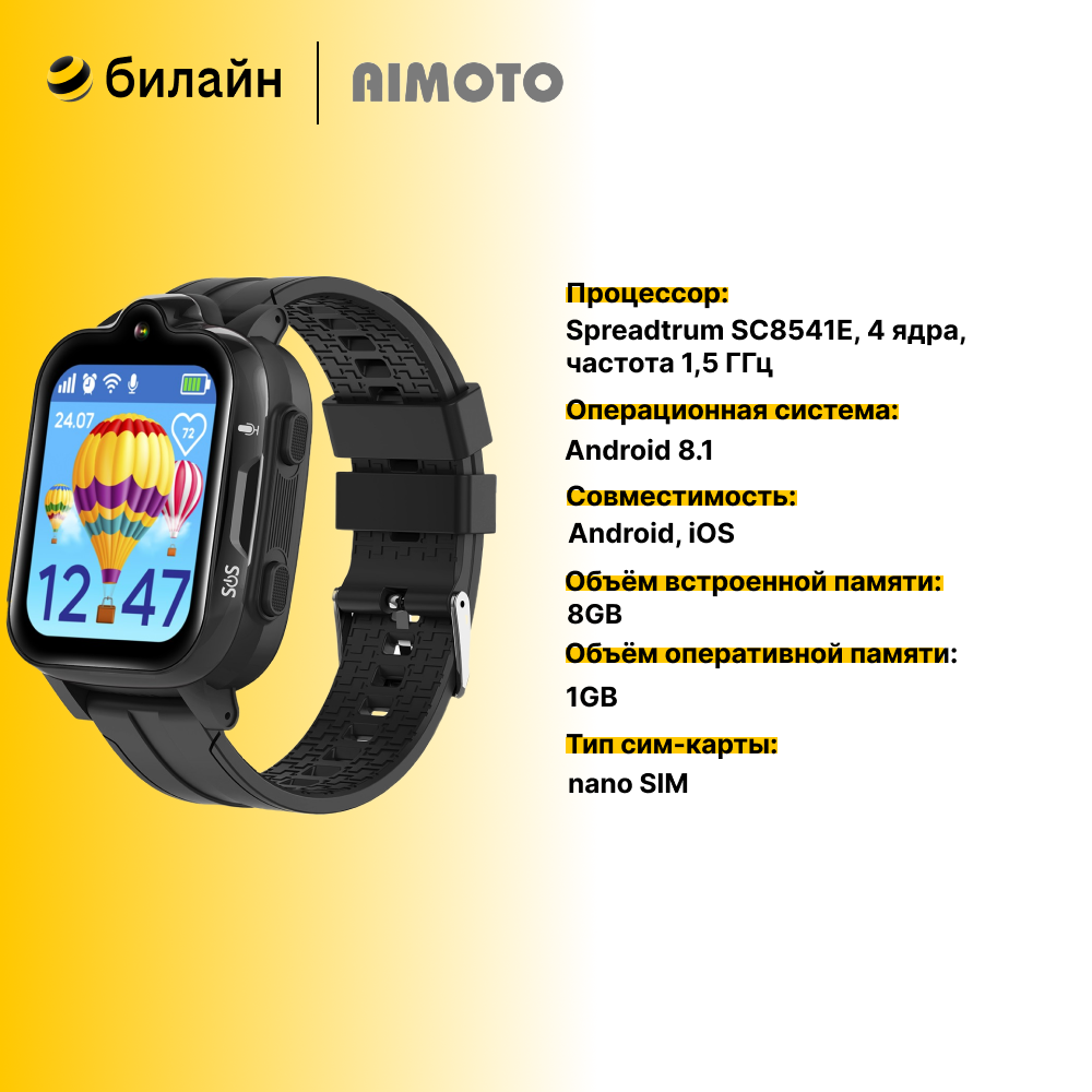 Aimoto Часы-телефон Aimoto IQ 4G с голосовым помощником Маруся детские, черные