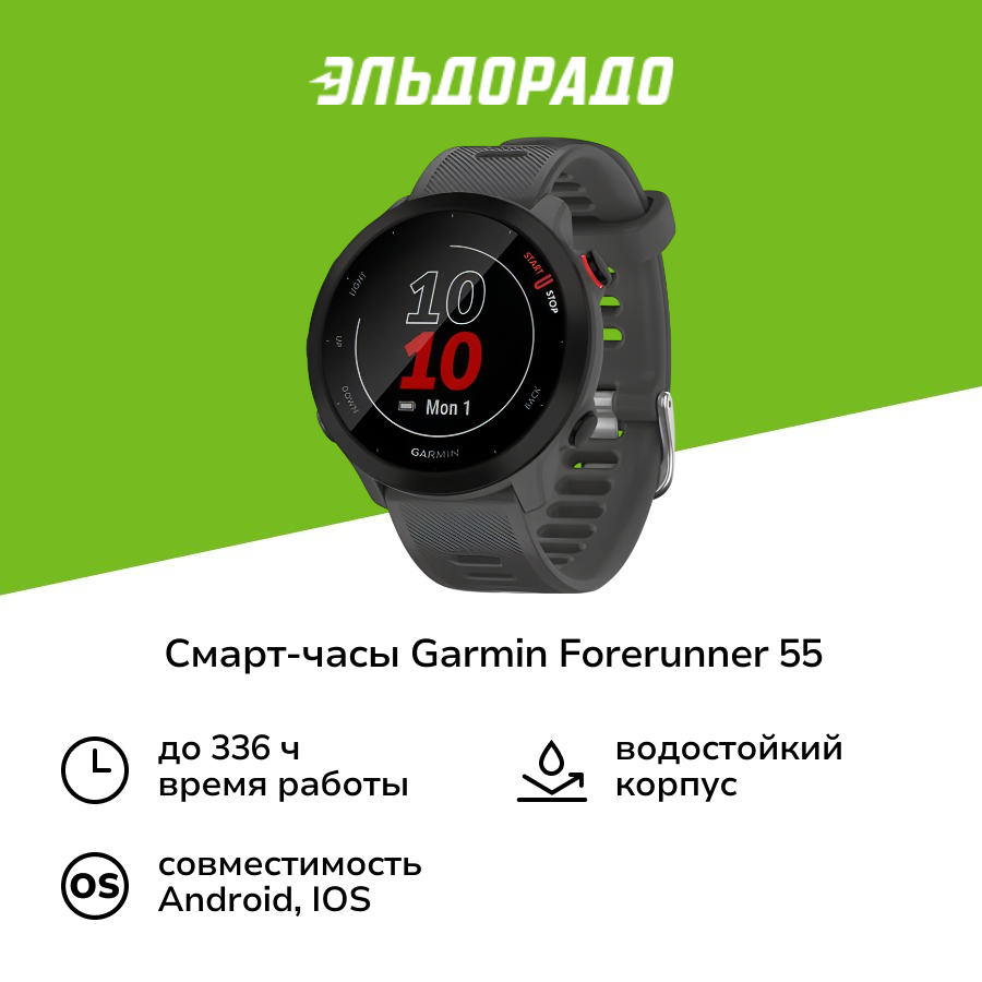 СохранитьУмные часы Garmin Forerunner 55 Monterra Grey (010-02562-13) интересное: