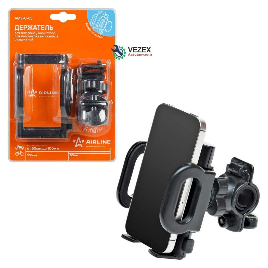 Держатель Телефона Универсальный 50-100 Мм Для Мотоцикла И Велосипеда Airline Ams-U-05 Airline Арт. Ams-U-05 AIRLINE арт. AMSU05