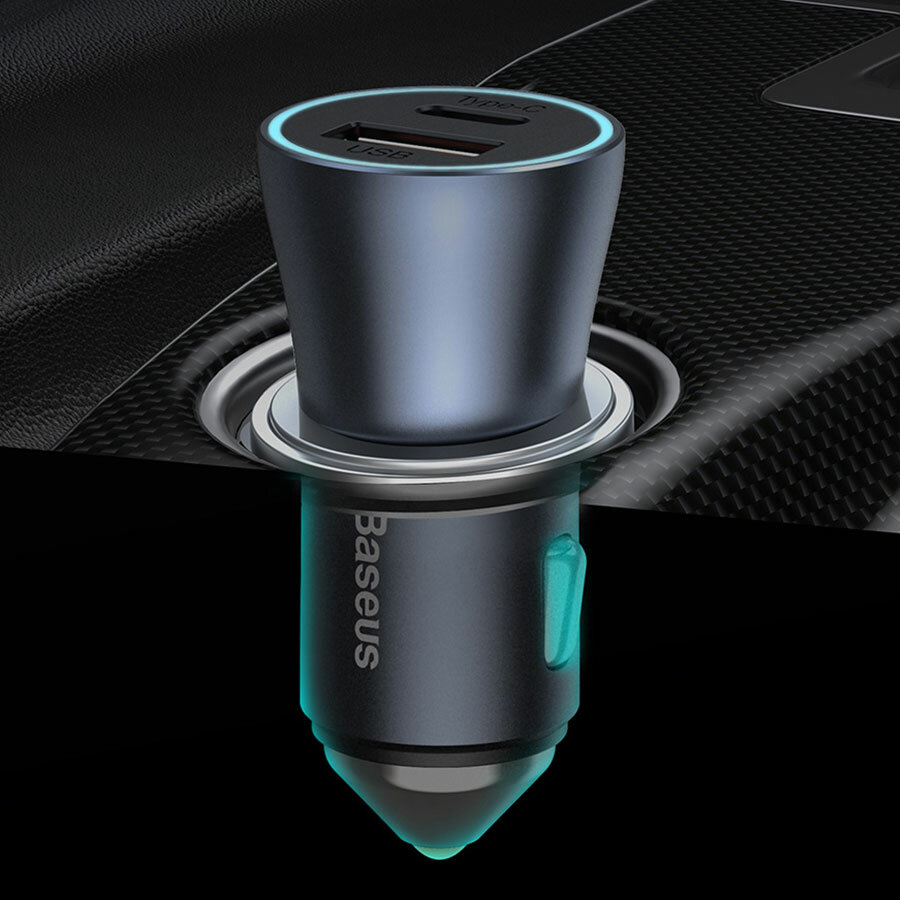 СохранитьАвтомобильное зарядное устройство BASEUS Golden Contactor Pro Dual, 1xUSB + 1xUSB-C с Кабелем Type-C - Lightning, 3A, 40W, темно-серый интересное: