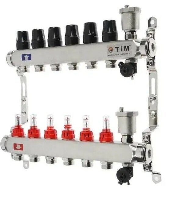 | Подробная комплектация | напорный коллектор с запорными вентилями 1 шт., обратный коллектор с термостатическими вентилями 1 шт., дренажные клапаны 2 шт., автоматический воздухоотводчик 2 шт., цельнометаллический кронштей 2 шт., заглушки 2 шт. |