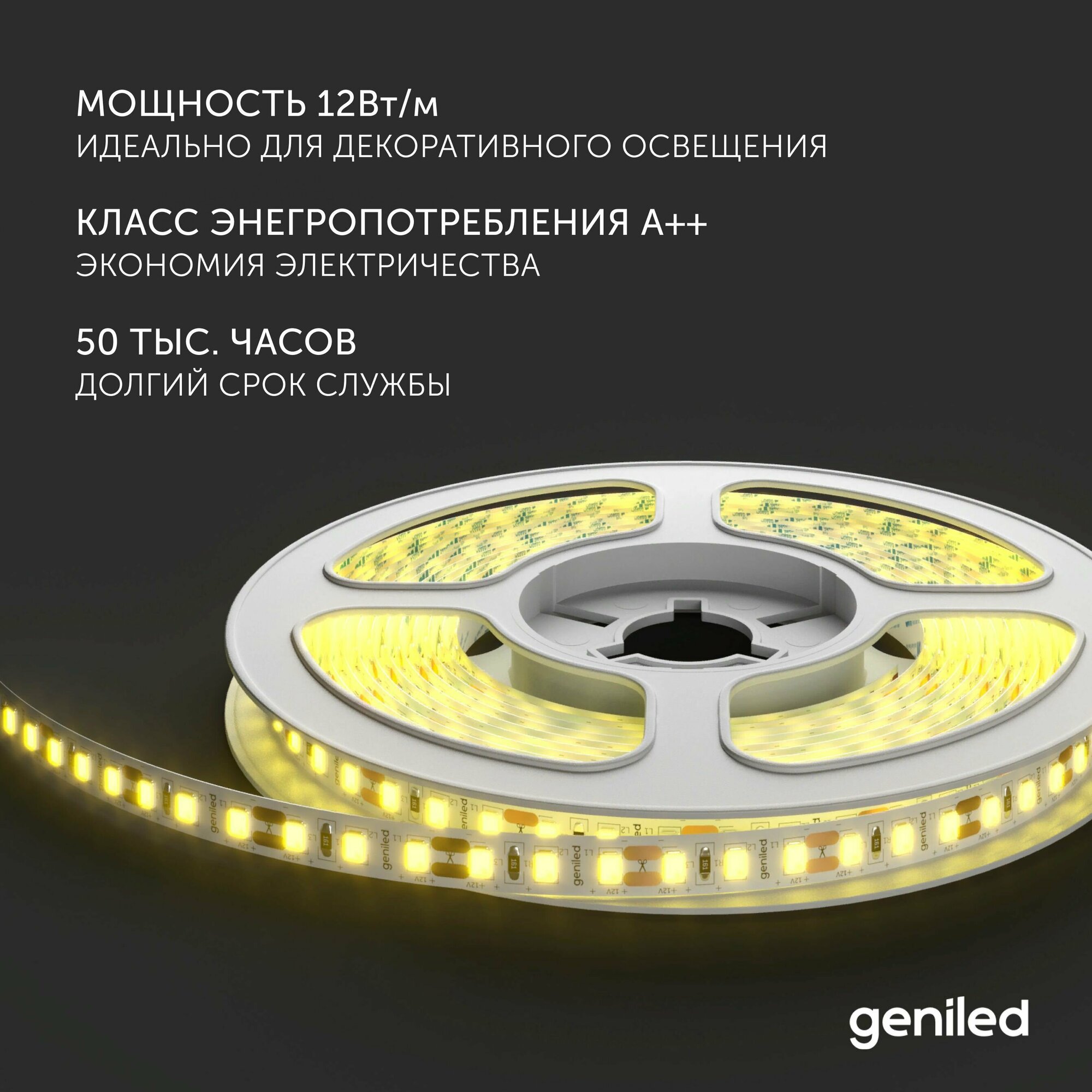Светодиодная лента Geniled - Желтый свет / GL-120SMD2835 / 12 В / L - 5 м / B - 8 мм / W - 12 вт / Yellow / IP33