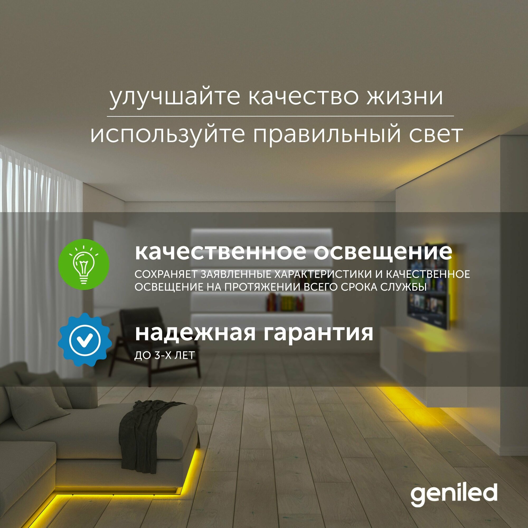 Светодиодная лента, подсветка Geniled - для комнаты, в гардероб, на кухню - Желтый свет / GL-120SMD2835 / 12В / Длина - 5м / B - 8 мм / W - 12Вт / Yellow / IP33