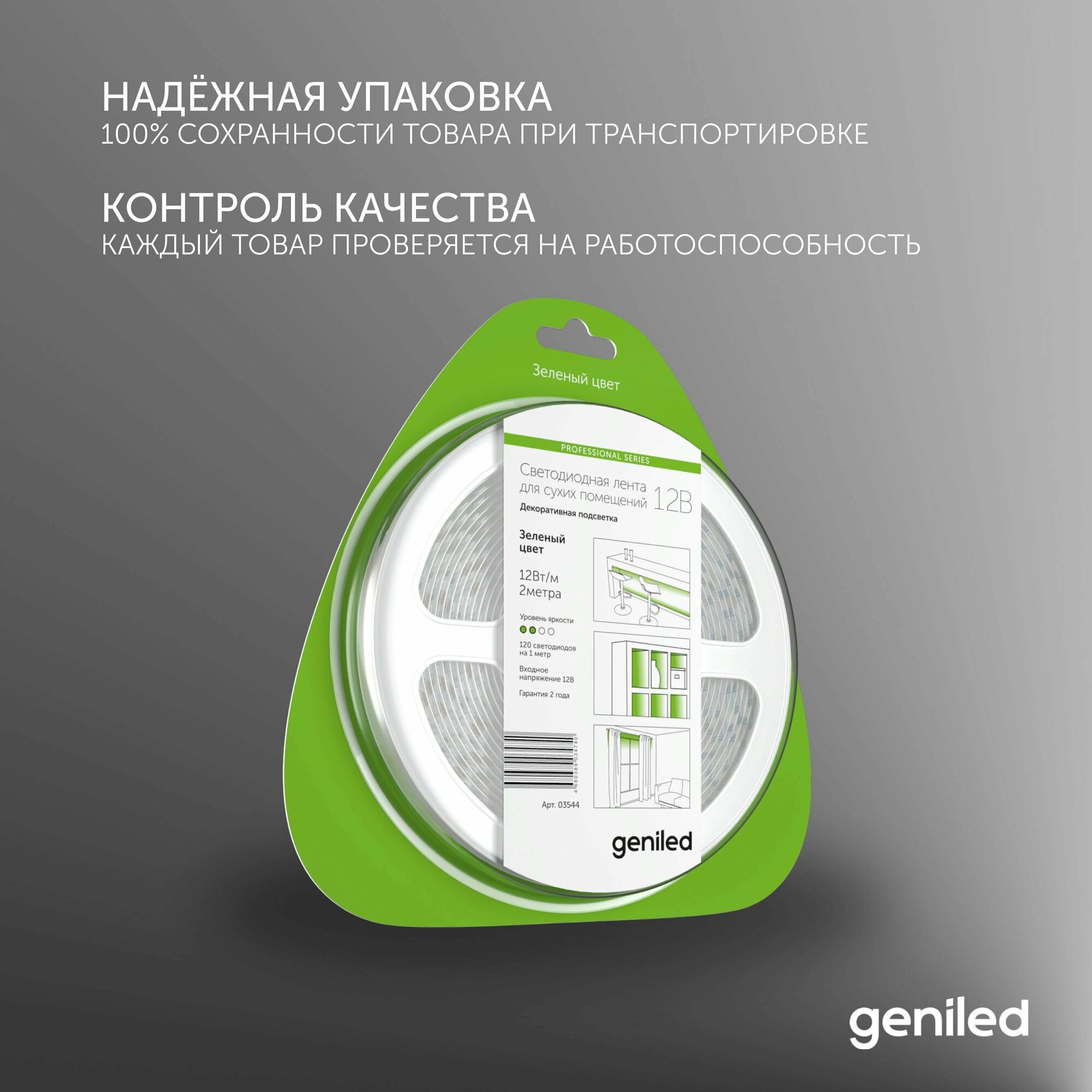 СохранитьСветодиодная лента, подсветка Geniled - для комнаты, в гардероб, на кухню - Зеленый свет / GL-120SMD2835 / 12В / Длина - 2м / B - 8 мм / W - 12Вт / Green / IP33 интересное: