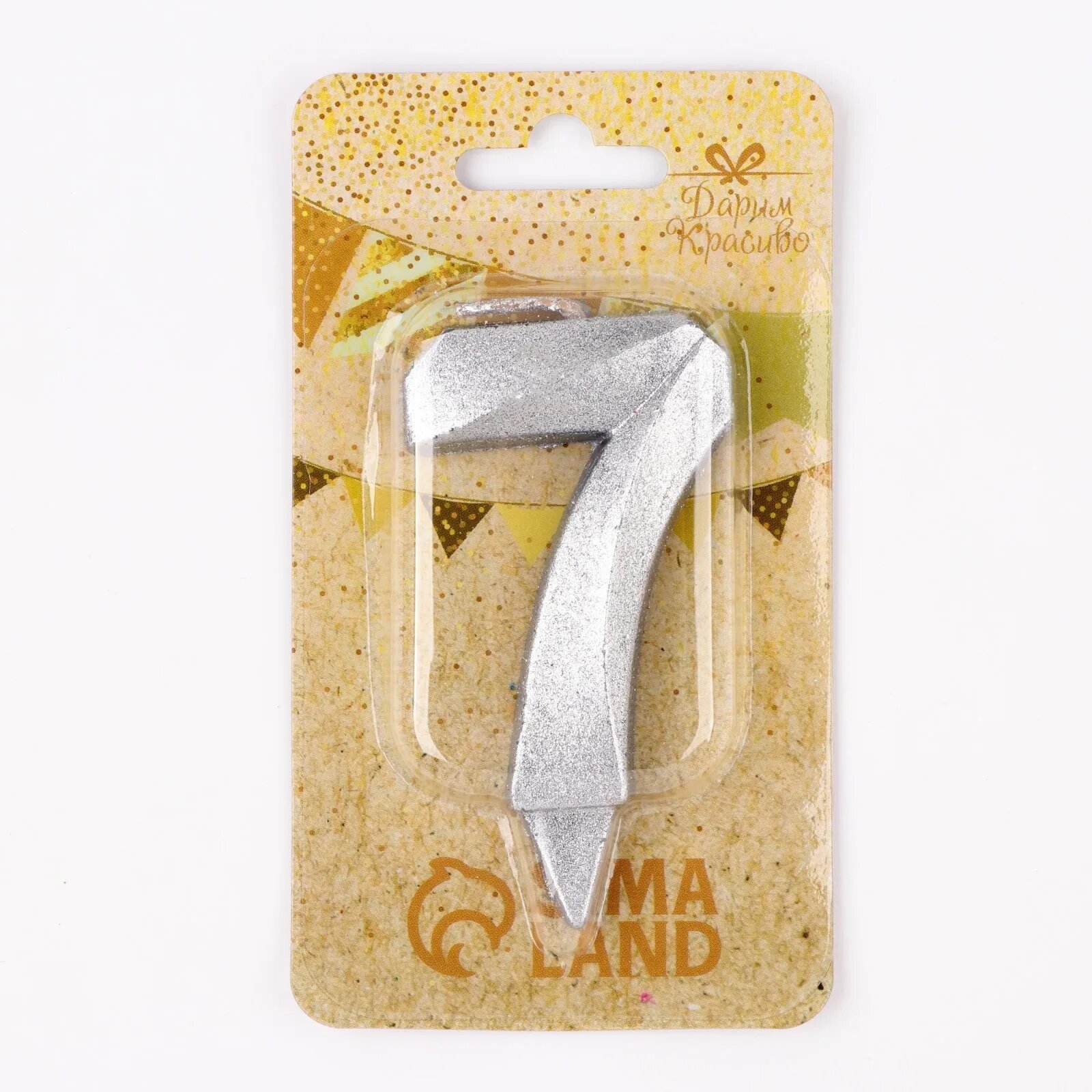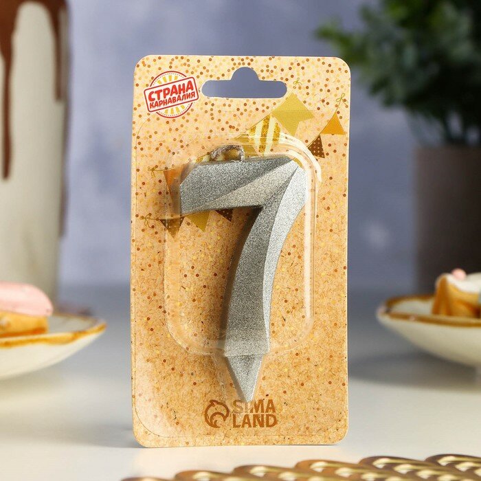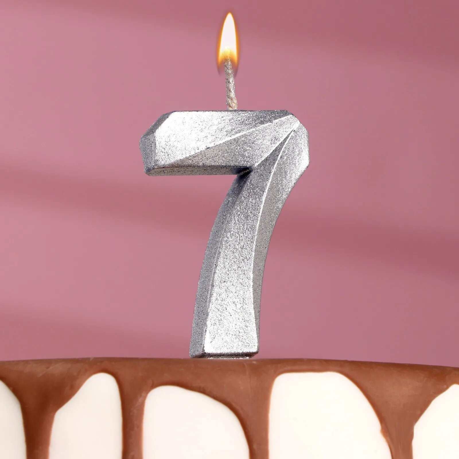 Купить Свеча в торт "Грань", цифра "7", серебряный металлик, 6,5 см(4 шт.)