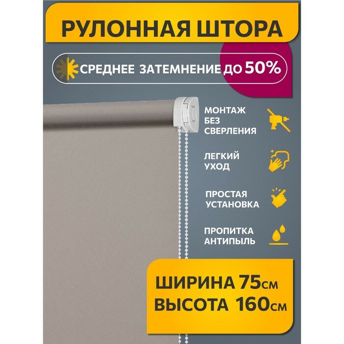 Купить Рулонные шторы однотонные Плайн Какао с молоком DECOFEST 75 см на 160 см, жалюзи на окна
