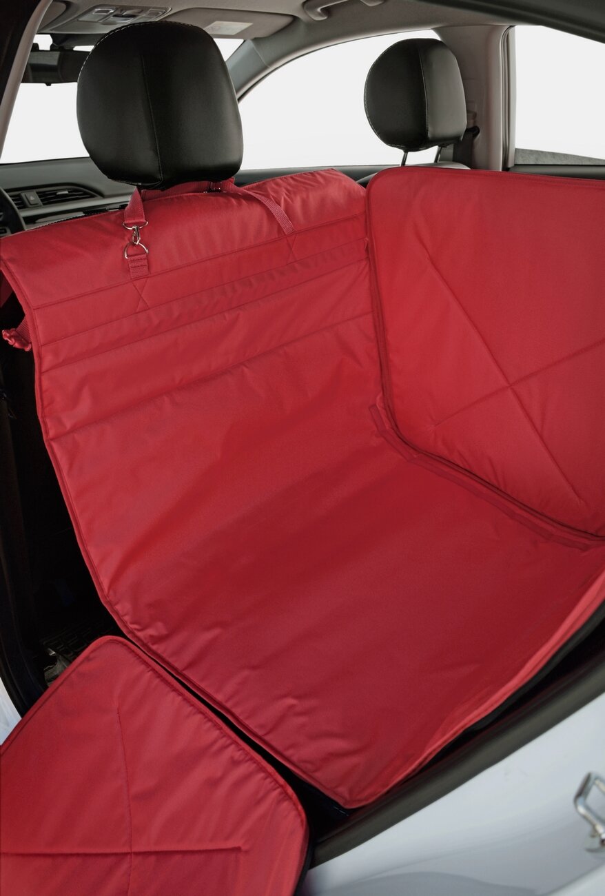 Автогамак для перевозки собак Happy Dog Premium (Хэппи Дог Премиум). На 1/3 заднего сиденья. Цвет: красный с черной окантовкой.