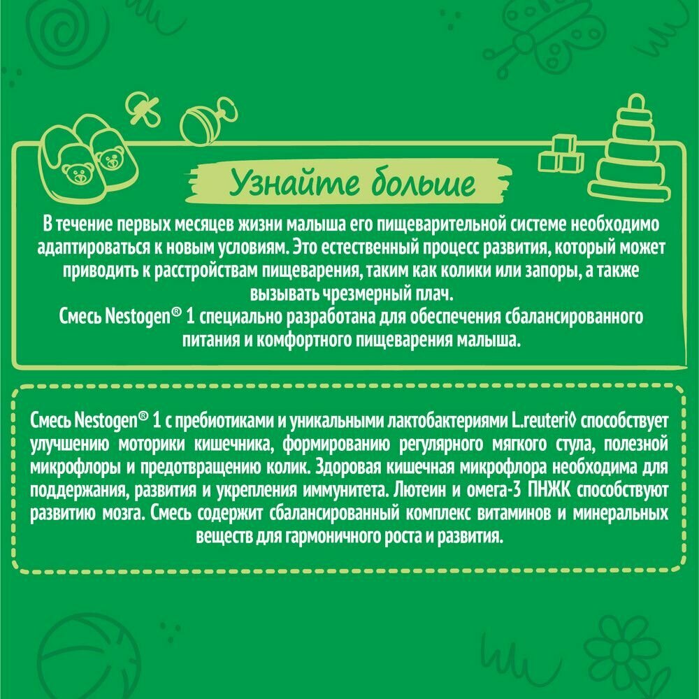 Нестле NESTOGEN 1 сухая молочная смесь с Омега-3 ПНЖК и лактобактериями 600г