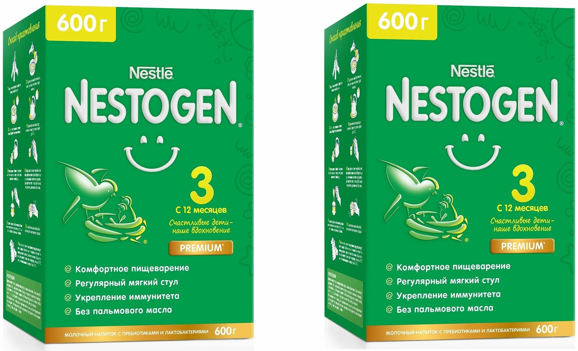 Купить Молочко детское Nestle Nestogen Premium 3, с 12 месяцев, для комфортного пищеварения, 600 г 2 упаковки