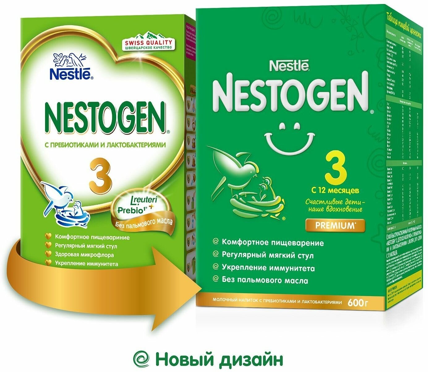 СохранитьМолочко детское Nestle Nestogen Premium 3, с 12 месяцев, для комфортного пищеварения, 600 г 2 упаковки интересное:
