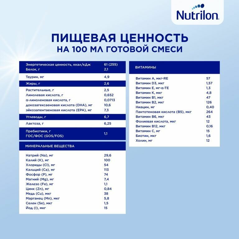 | Плюсы: | Хорошая смесь, ни аллергии, ни запоров, состав хороший. Искали смесь когда переходили с гв, подошел только нутрилон. По сравнению с наном он ближе по вкусу к грудному молоку. |