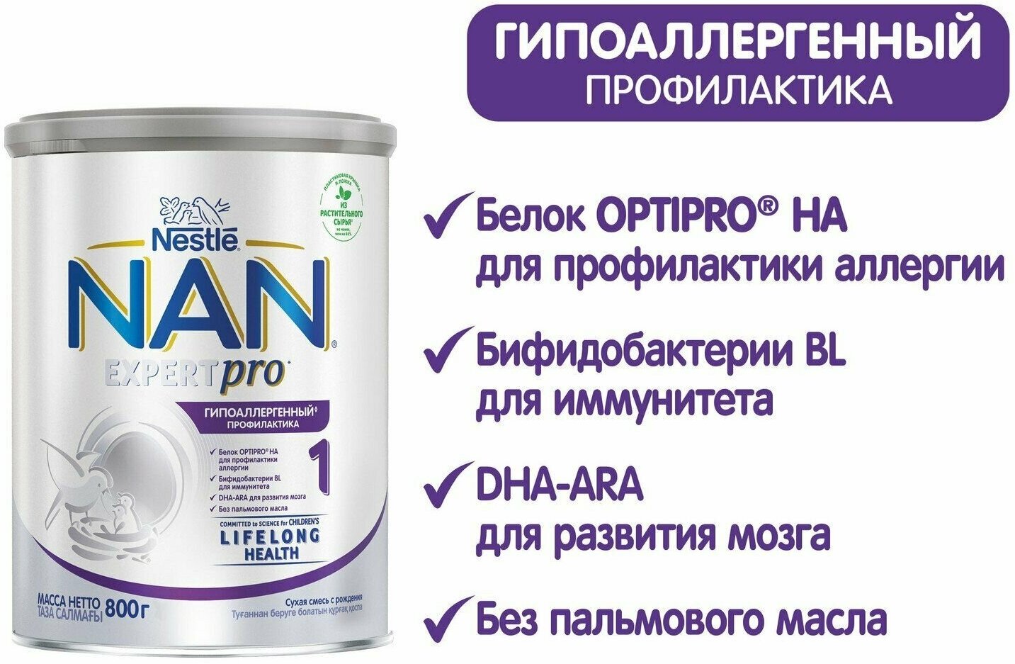 Nestle NAN 1 ExpertPro гипоаллергенный с рождения 800г