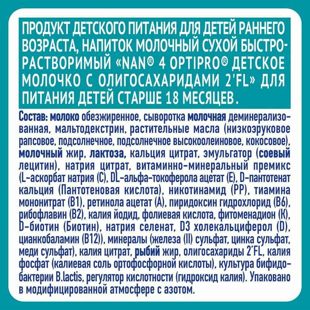 NAN 4 OPTIPRO Детское молочко для детей с 18 месяцев с олигосахаридами 2'FL, 800 г
