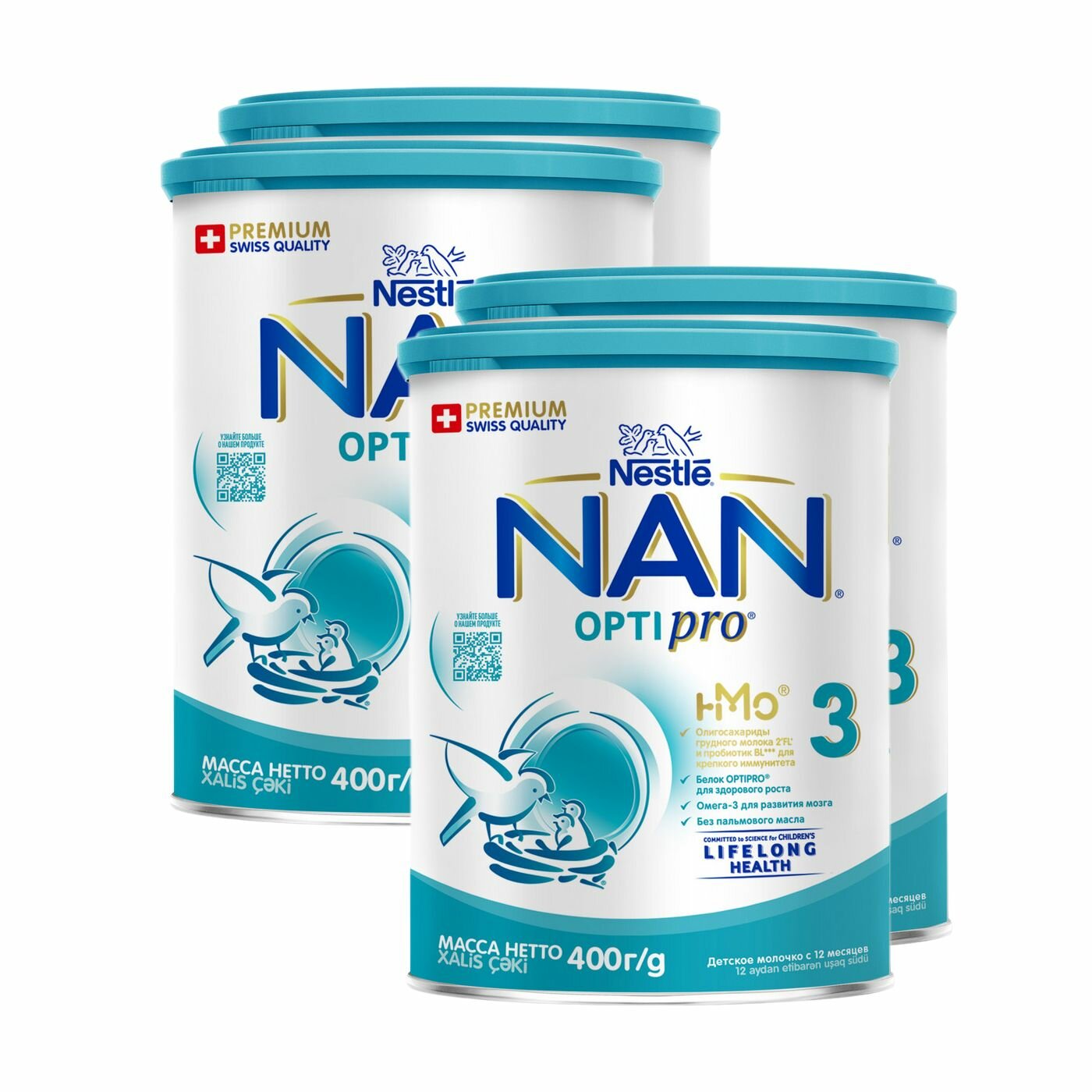Купить Молочко детское Nestle NAN 3 OPTIPRO для роста, иммунитета и развития мозга, с 12 месяцев, 400 г 4 шт