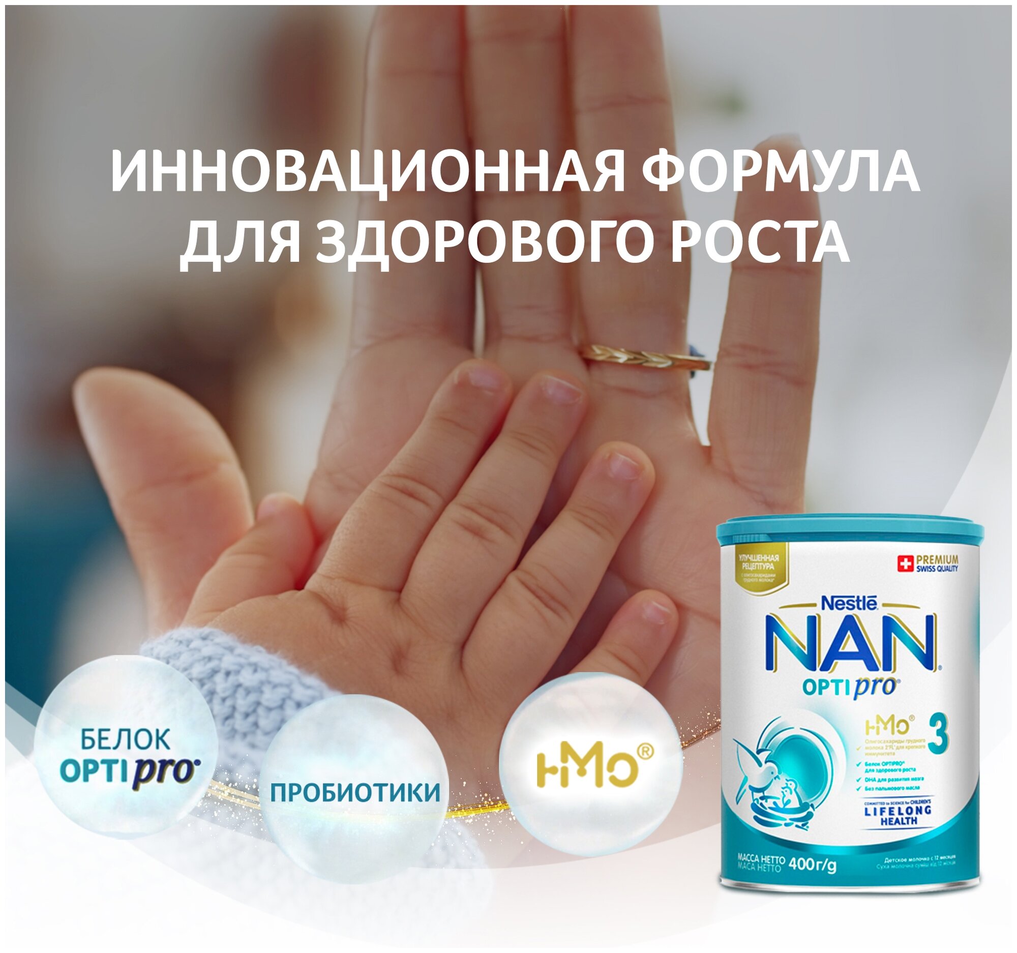 Молочко детское Nestle NAN 3 OPTIPRO для роста, иммунитета и развития мозга, с 12 месяцев, 400 г