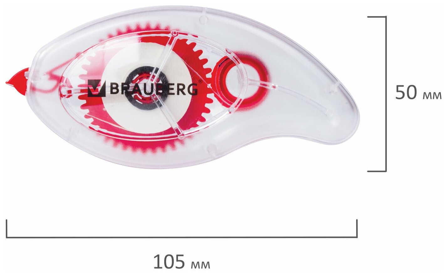 Корректирующая лента/корректор/шрих/замазка Brauberg 5 мм х 12 м, корпус прозрачный, с подкручиванием, блистер, 226814