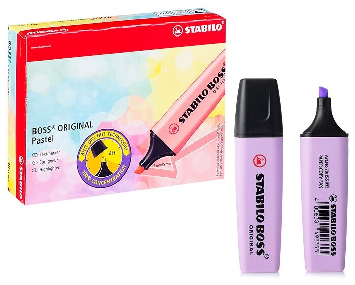 Ниже Вы можете прочитать отзывы на Текстовыделитель Stabilo Boss Original Pastel 70/155, 2-5 мм, скошенный, лавандовый (Stabilo 70/155)*, ознакомится с подробными характеристиками, посмотреть интересные обзоры и фотографии на Текстовыделитель Stabilo Boss Original Pastel 70/155, 2-5 мм, скошенный, лавандовый (Stabilo 70/155)*.