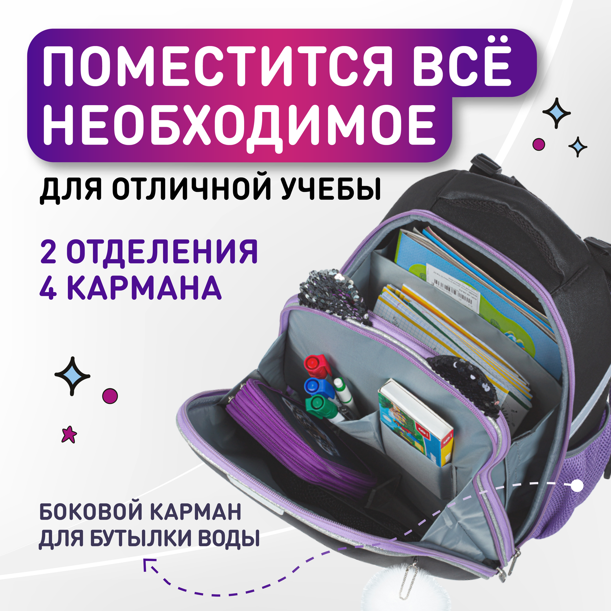 | Плюсы: | Очень красивый и удобный ранец для девочки, 2 класс! |