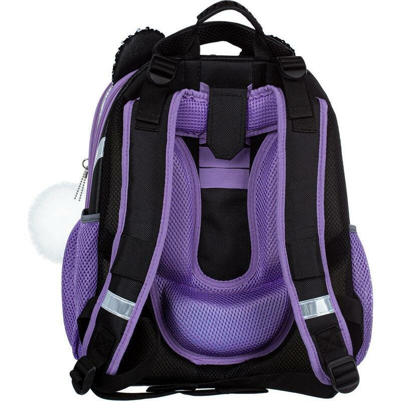 Купить Ранец школьный №1 School Kitty Black, портфель анатомический для девочки, 2 отделения, 4 кармана