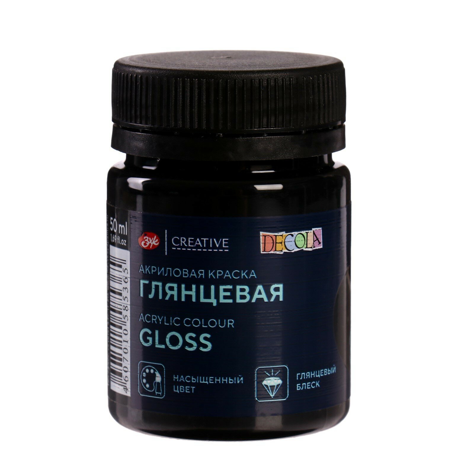 Краска акриловая художественная Decola, 50мл, глянцевая, баночка, черный