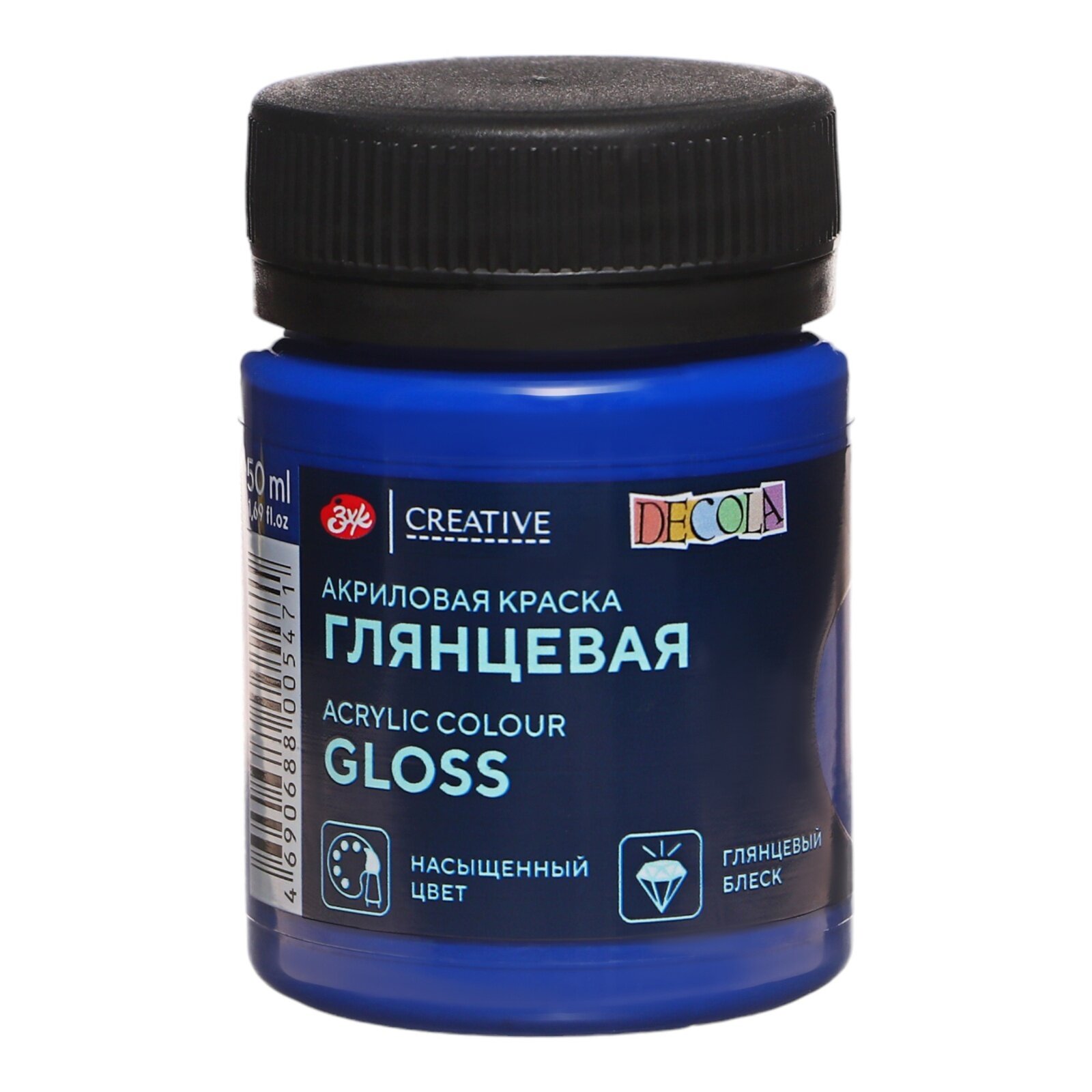 Краска акриловая художественная Decola, 50мл, глянцевая, баночка, синий