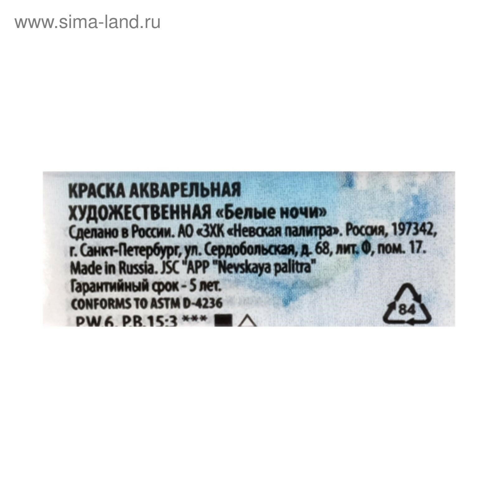 Завод художественных красок «Невская палитра» Акварель художественная "Белые ночи", 2.5 мл, лак синий, в кювете