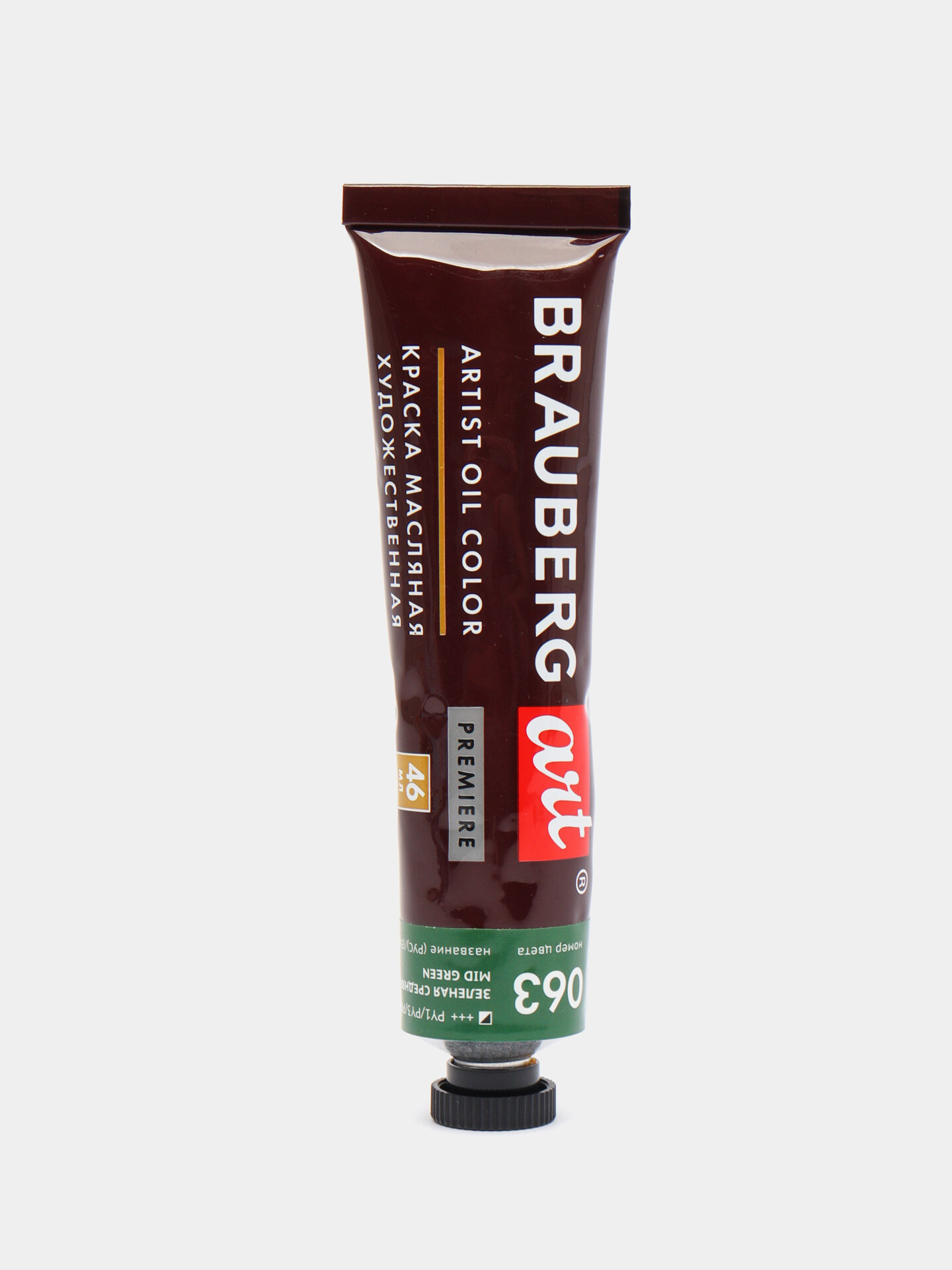 Краска масляная художественная BRAUBERG ART PREMIERE, 46 мл, проф. серия, земляная зеленая, 191433