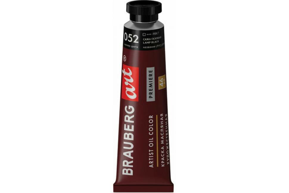 Краска масляная художественная BRAUBERG ART PREMIERE, 46 мл, проф. серия, сажа газовая, 191446 /Квант продажи 1 ед./