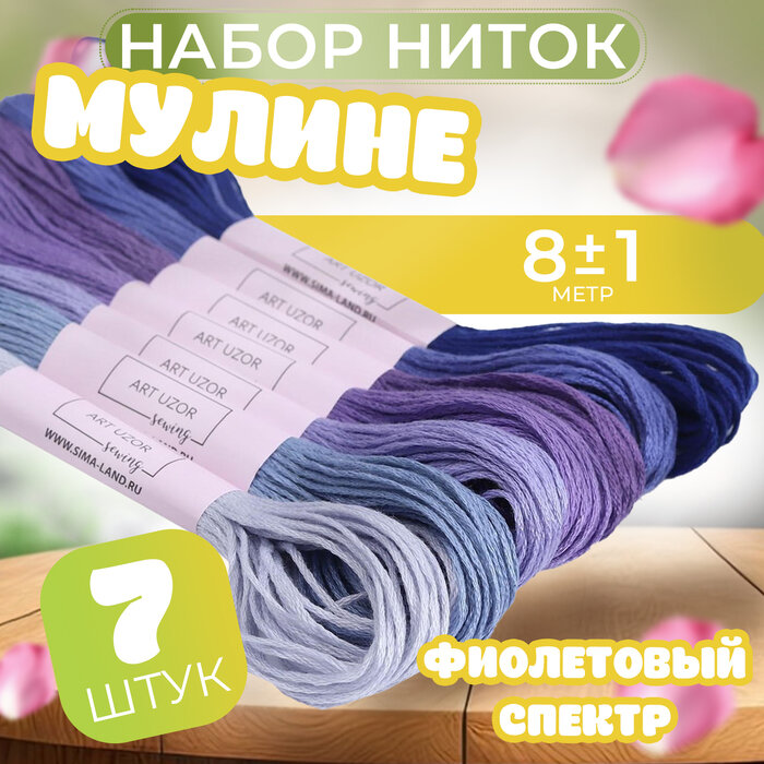 Набор ниток мулине, 8 +- 1 м, 7 шт, цвет фиолетовый спектр интересное: