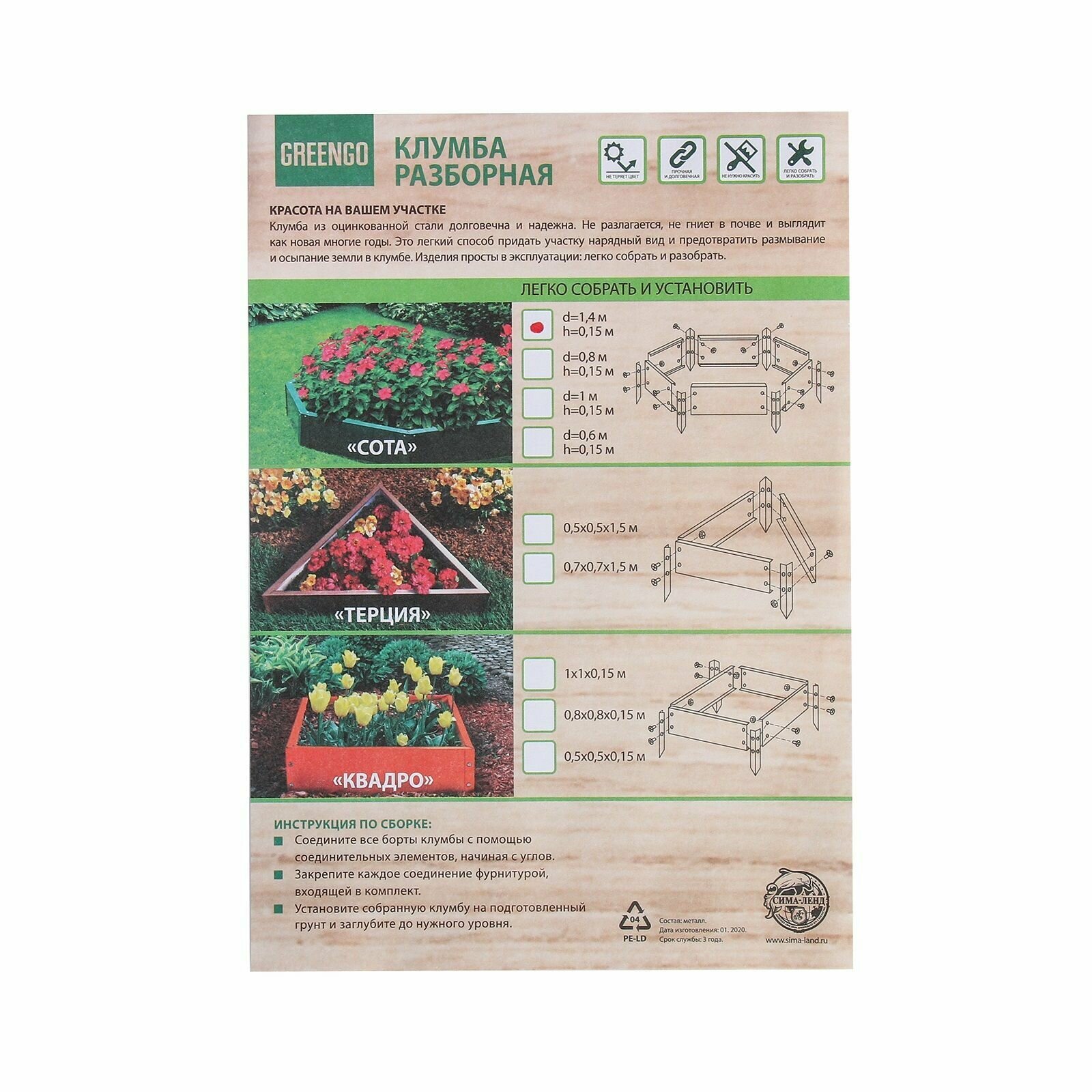 Клумба оцинкованная, d = 140 см, h = 15 см, Greengo