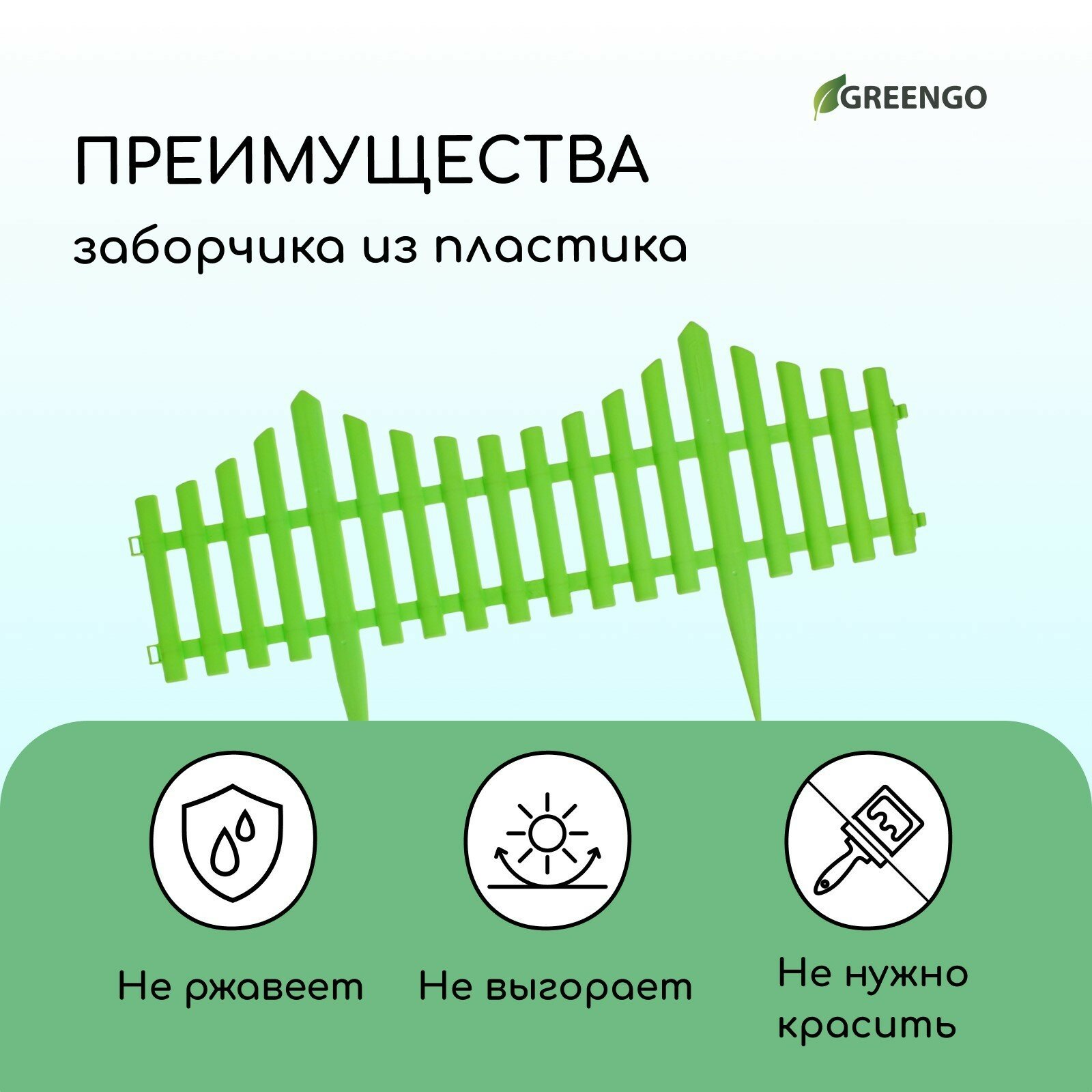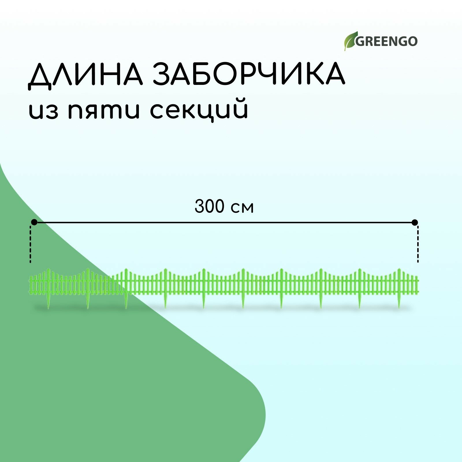 Ограждение декоративное, 30 ? 300 см, 5 секций, пластик, зелёное, Greengo Greengo 3296973 .