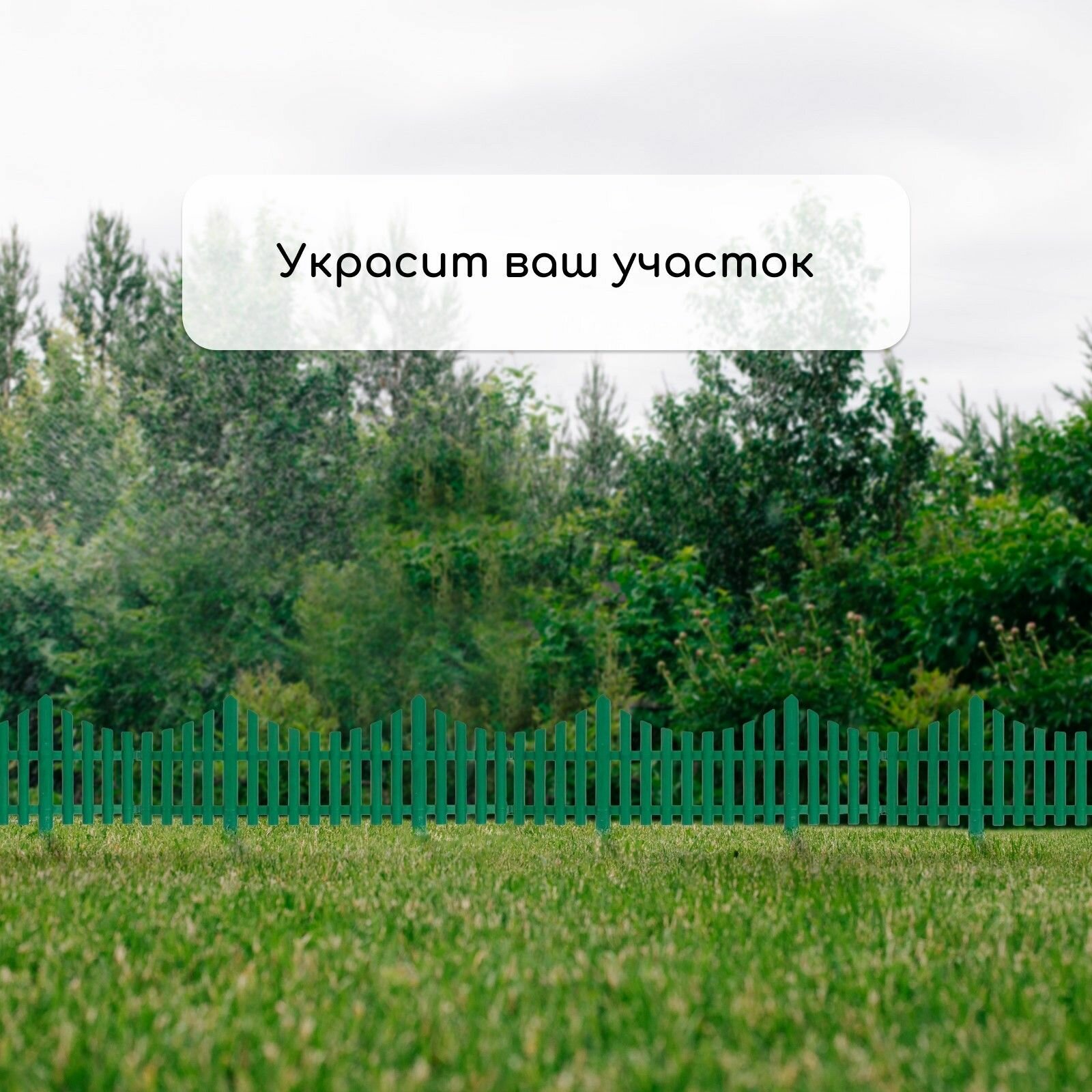 Ограждение декоративное, 30 x 300 см, 5 секций, пластик, салатовое./В упаковке шт: 1