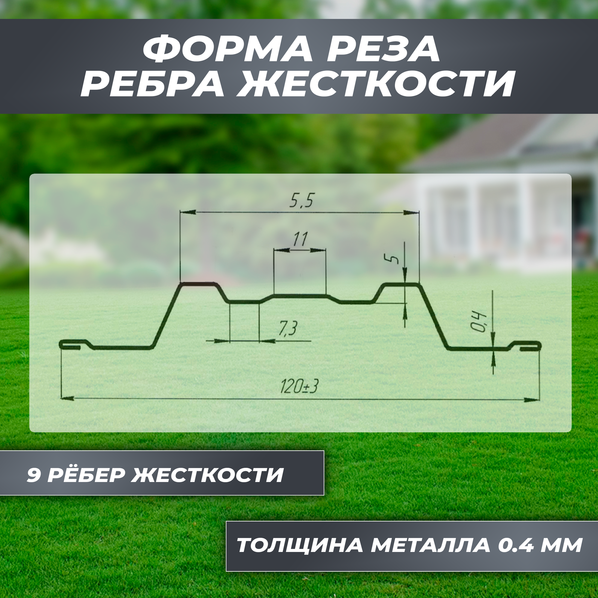 Штакетник металлический Практик (двусторонний окрас, цвет зеленый мох, высота 1.1 м, ширина планки 12 см, 20 шт., саморезы в комплекте)