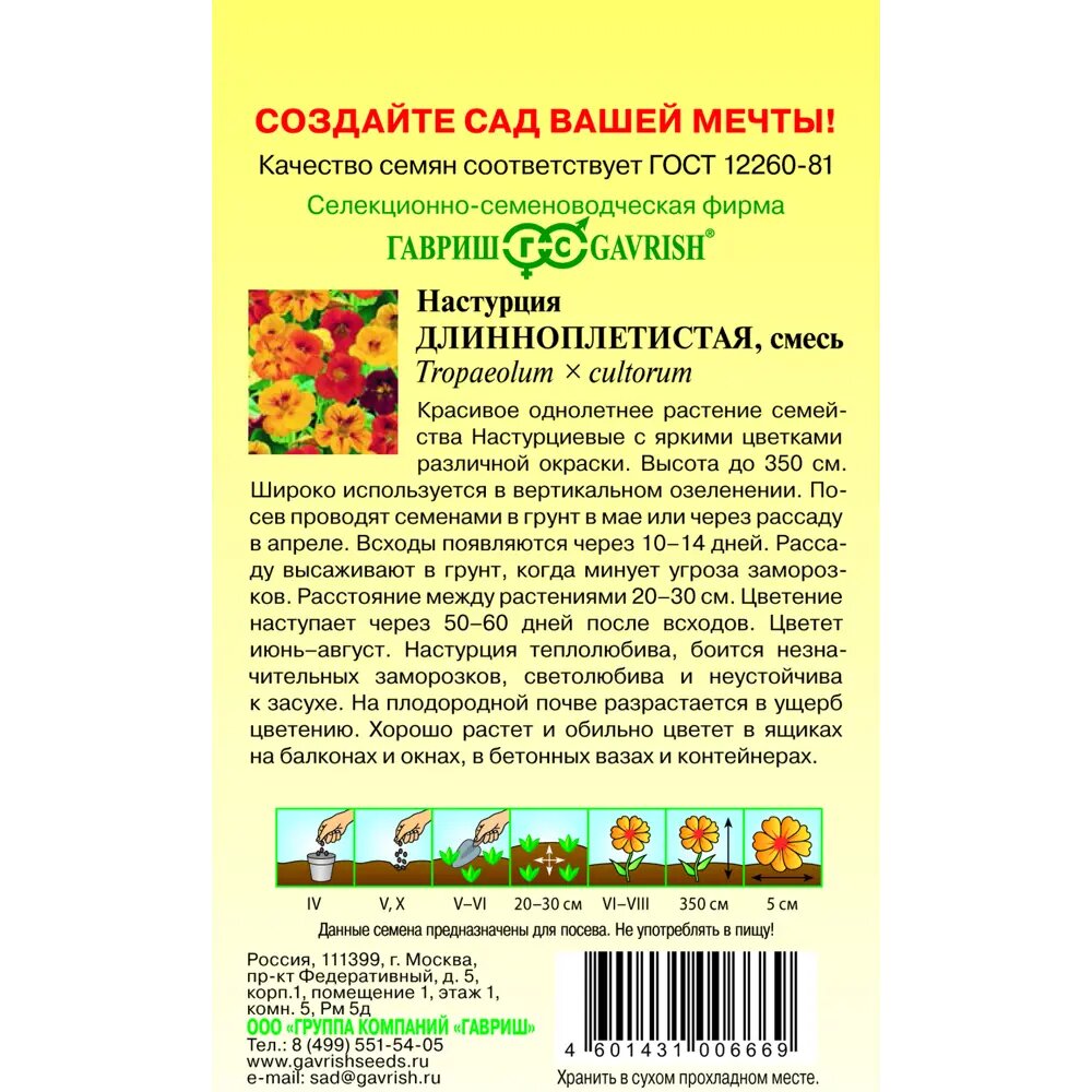 Гавриш Настурция Длинноплетистая, смесь, 1 г