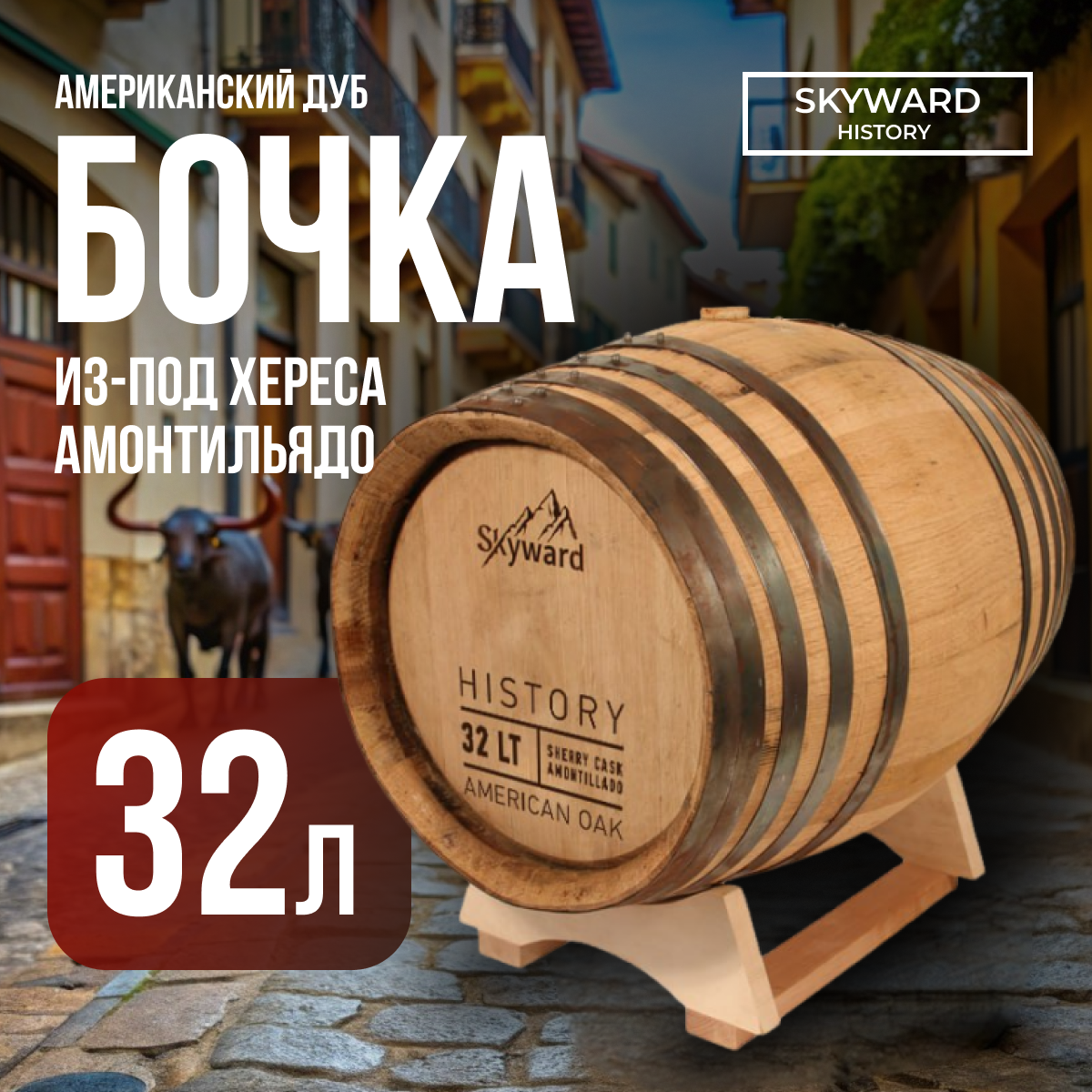 Дубовая Бочка 32 л Skyward History (американский дуб) из-под хереса Амонтильядо (Испания) интересное: