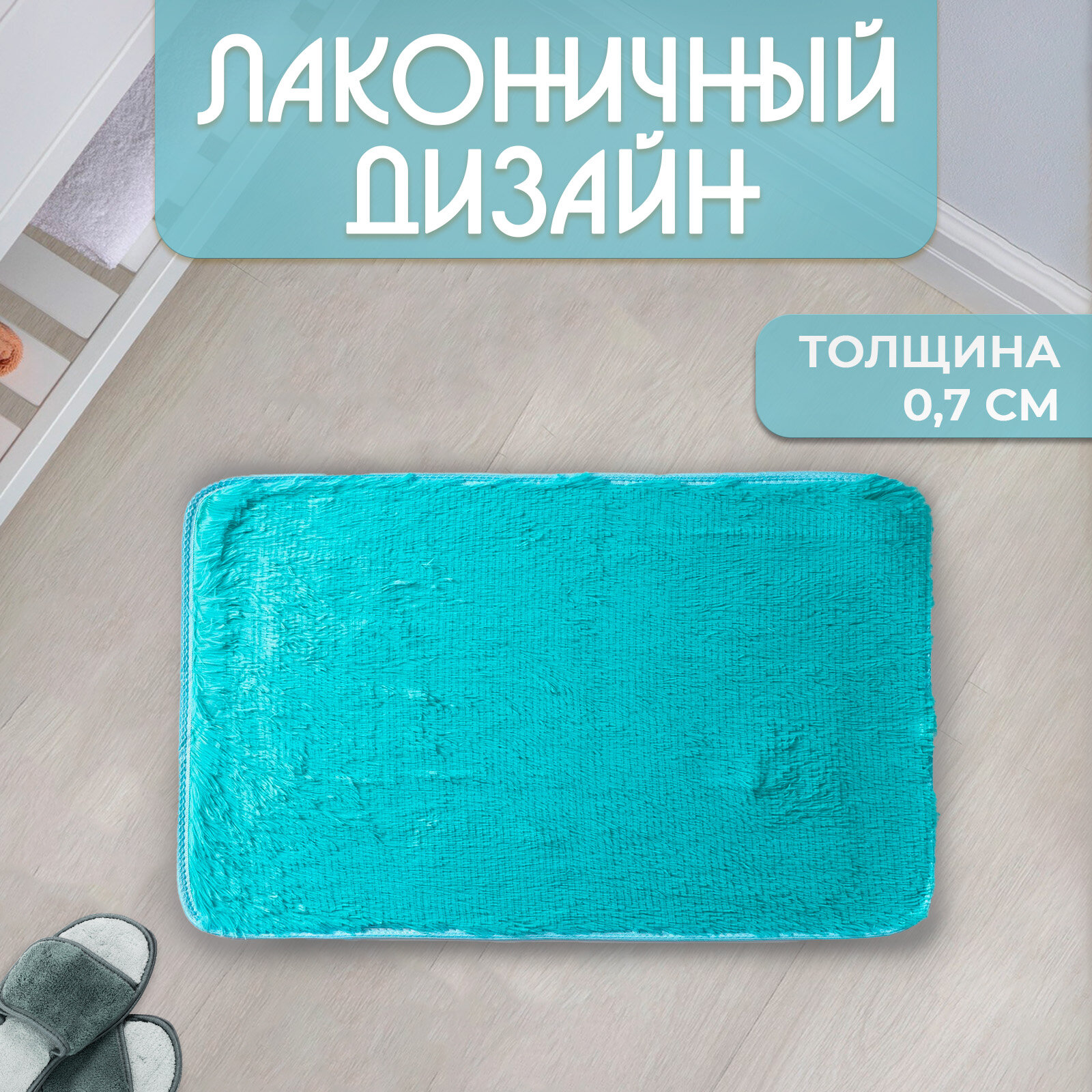 Коврик для дома прямоугольный "Пушистик", 50x80 см, цвет лазурный