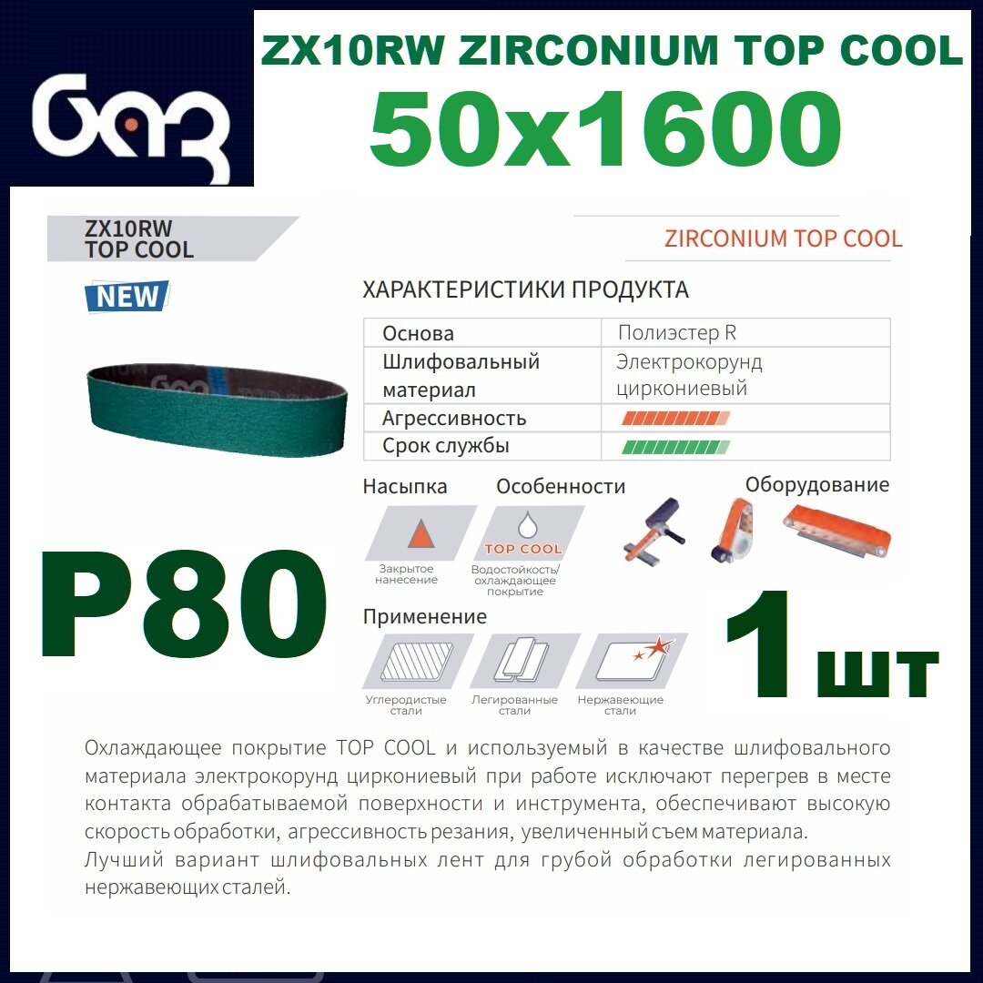 Лента шлифовальная бесконечная для гриндера ZX10YW ZIRCONIUM TOP COOL P80 50х1600 ГОСТ 12439-79 (1 шт.) интересное: