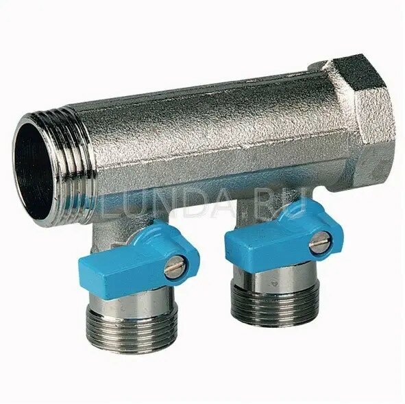 Коллектор с шаровыми кранами 3/4"х2х3/4", Henco VB050502-BLAUW