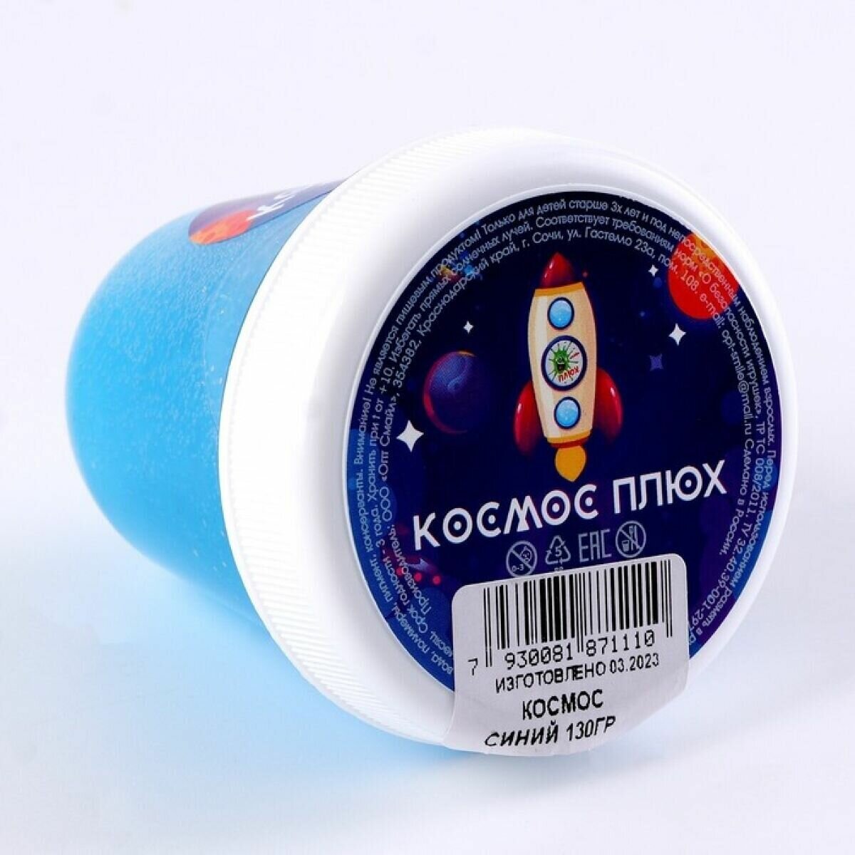 Слайм Плюх Космос, синий, светящийся, с блестками, 130 г (1110)