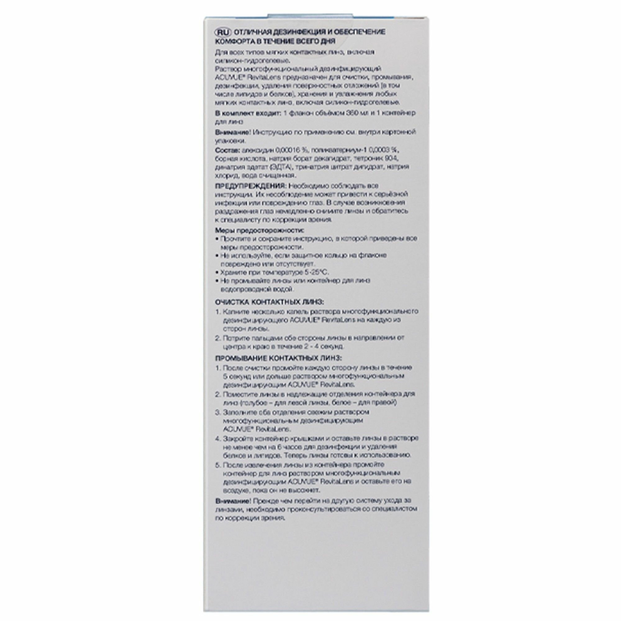 Многофункциональный раствор для мягких контактных линз Acuvue RevitaLens (с контейнером) 360 ml