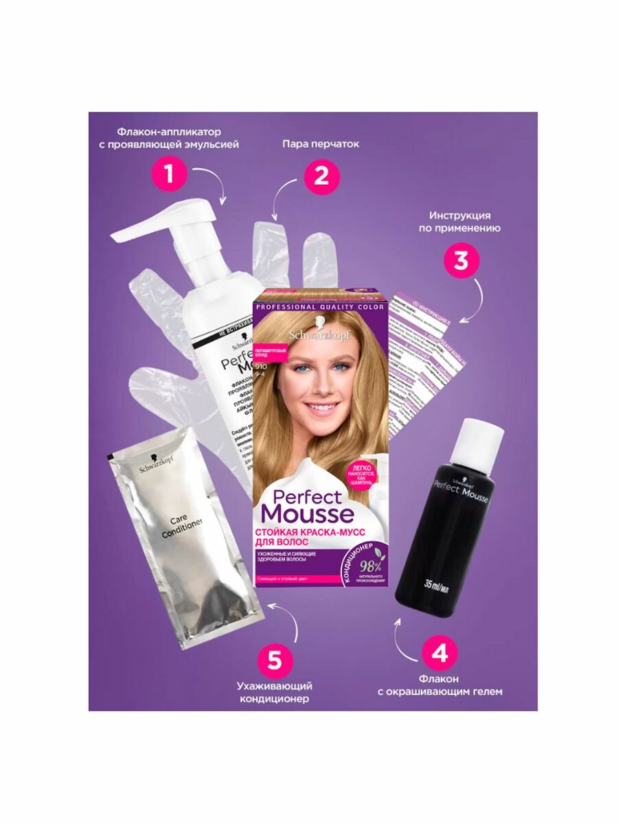 СохранитьSchwarzkopf Краска для волос Perfect Mousse (Перфект Мусс) 910 Перламутровый блонд интересное: