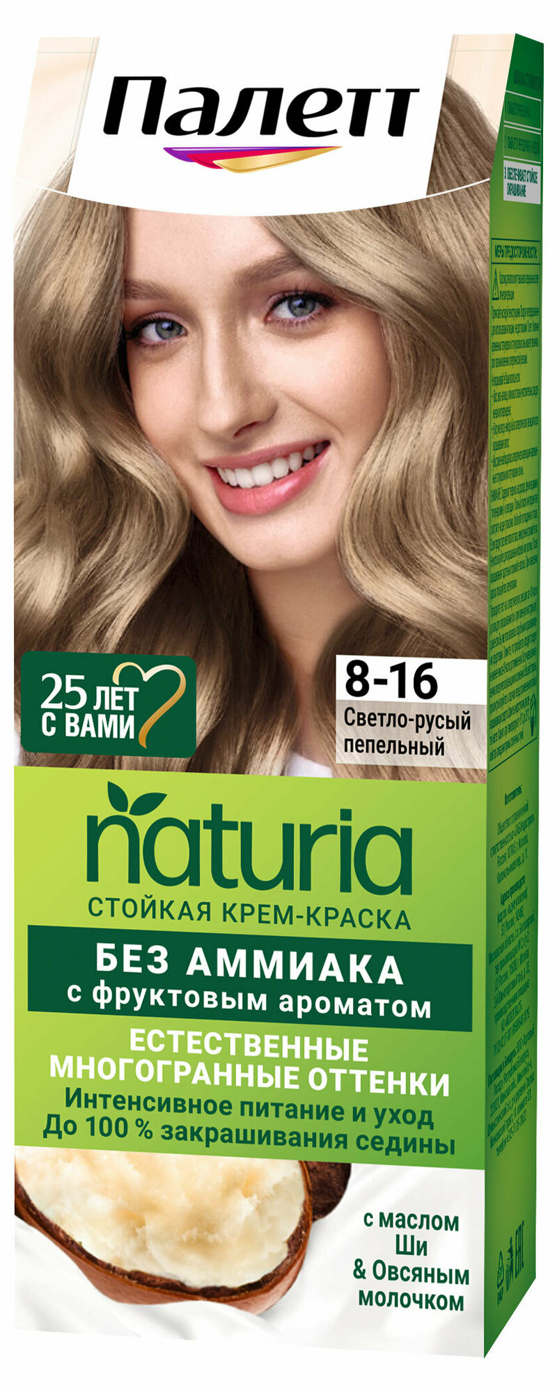 Палетт Naturia Стойкая крем-краска для волос, 8-0 Светло-русый, 110 мл - 6 шт