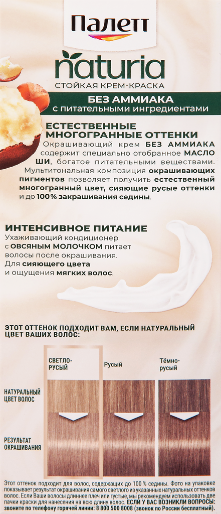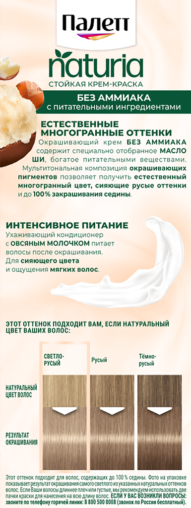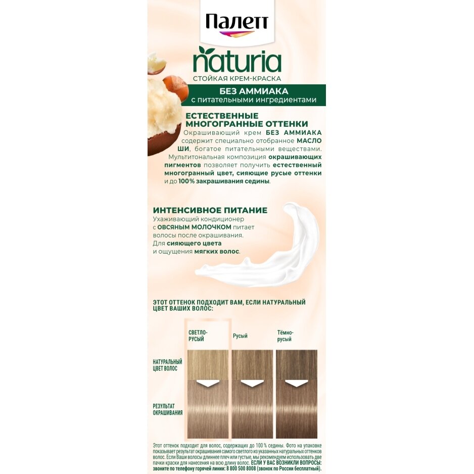 Палетт Naturia Стойкая крем-краска для волос, 8-0 Светло-русый, 110 мл - 6 шт
