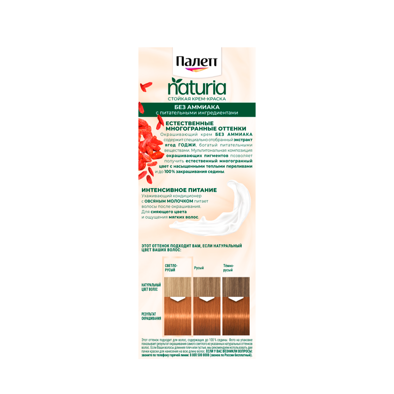 Палетт Naturia Стойкая крем-краска для волос, 8-0 Светло-русый, 110 мл - 6 шт