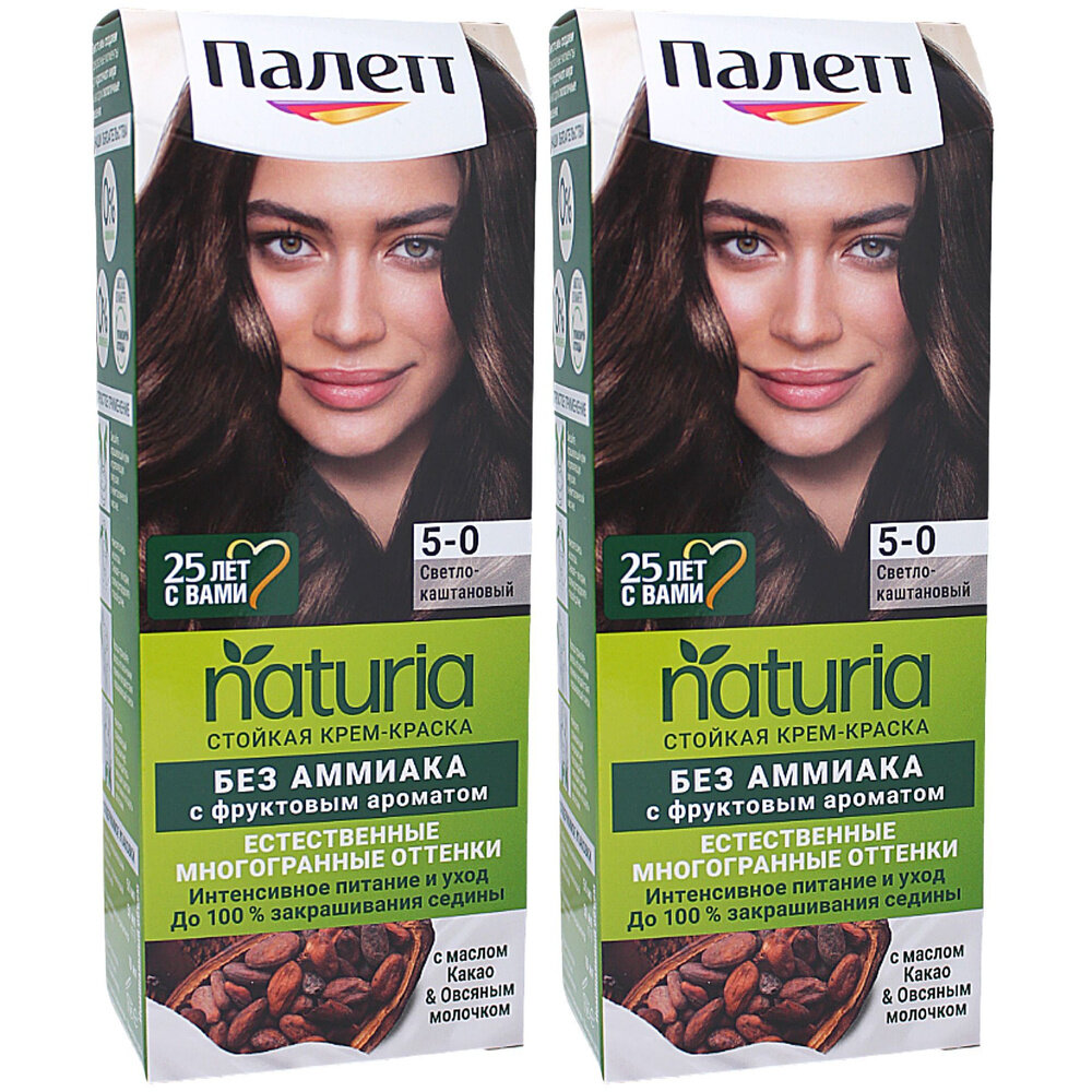 Купить Палетт Naturia Стойкая крем-краска для волос, 5-0 светло-каштановая, 110 мл - 2 шт